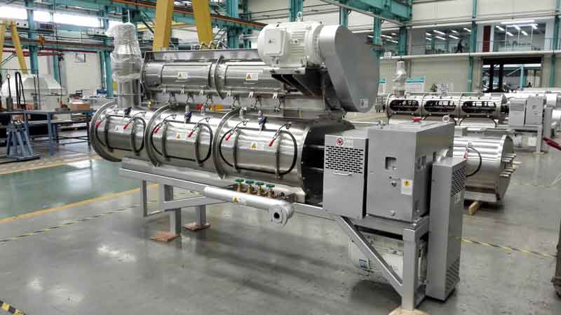 狗糧加工設(shè)備JNK200-T5M:1。JNK200-T5M型狗糧加工設(shè)備安裝方便、出廠已經(jīng)試機(jī),狗糧機(jī)切刀采用直角切刀技術(shù),調(diào)試簡(jiǎn)單;2。狗糧設(shè)備的主軸和切刀小軸均可隨時(shí)注入耐高溫潤(rùn)滑脂,延長(zhǎng)狗糧機(jī)的軸承使用壽命;3。JNK200-T5M狗糧設(shè)備每小時(shí)生產(chǎn)狗糧顆粒200公斤。